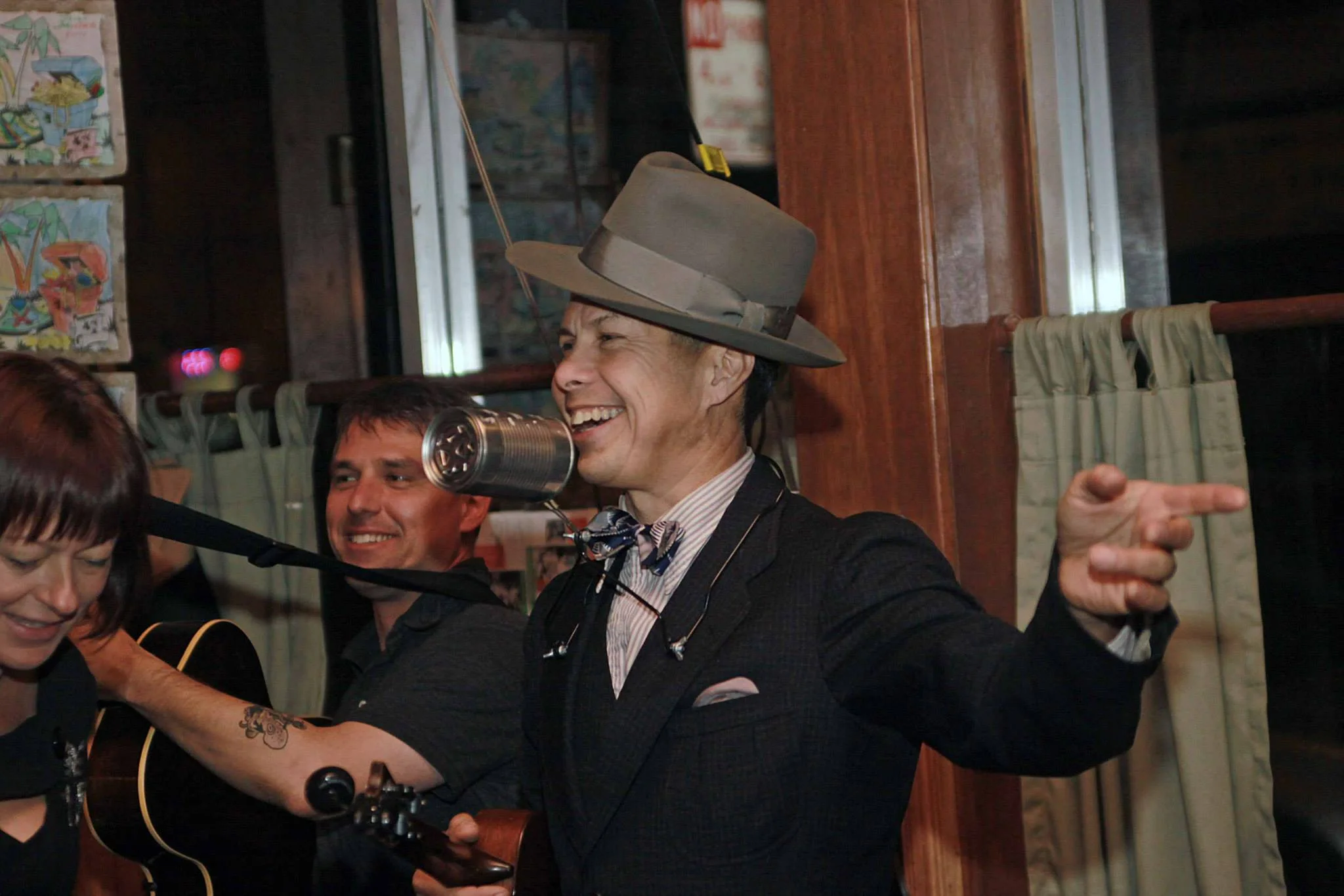 Rick Quisol is a renowned musician hailing from the Bay Area who specializes in hot jazz, hokum, and tin pan alley tunes. His repertoire extends through early blues and country, as well as pop music from the 50's and 60's. Playing to the room, the music (and outfits) can be tailored for your event, be it wedding, holiday party, corporate party, outdoor festival, themed event. A one of a kind man with a one of a kind band, the experience will leave a smile on everyone's face, and the impression of traveling back in time to a bygone era of crooners and hip shakers.